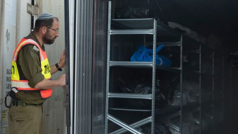 At the Shura Army Base, on the outskirts of the central Israeli city of Ramle, dead bodies and hacked-up body parts continued to pile up this week, still arriving from the country’s south in refrigerated trucks.