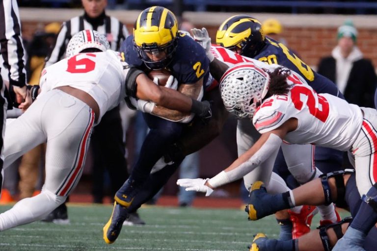 Ohio State receiver Marvin Harrison Jr., scored on a 14-yard touchdown pass with 8:05 left, cutting the Buckeyes’ deficit to three. Michigan drained the clock on its next possession, taking almost seven minutes to tack on a 37-yard field goal.