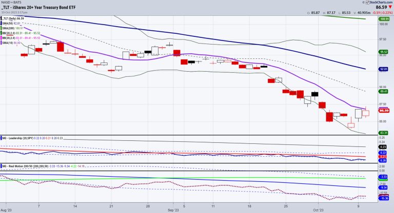 Semiconductors are one of the sub-sectors that have driven the rally from the October 2022 low to the July 2023 high. Bring up a chart of the semiconductor sub-industry, such as the Philadelphia Semiconductor Index ($SOX), and you’ll notice that the index is battling with the downward-sloping trendline. A break above that trendline would be a positive for semiconductor stocks.