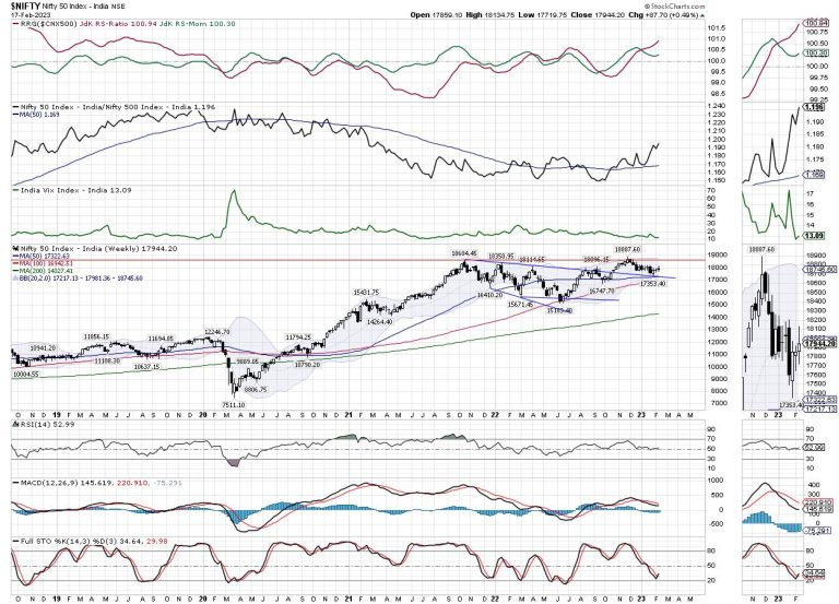 The 20-Week MA which presently stands at 17981, has assumed some importance on the weekly charts over the past many weeks. While the NIFTY was trading higher, it took support on this support level for five weeks in a row. After the Index violated and slipped below this support, NIFTY is seen resisting the 20-Week MA for the third week in a row. On the daily chart, NIFTY has closed just a notch below the crucial 100-DMA which is placed at 17967. With 50-DMA placed at 18033, the NIFTY has multiple resistance levels to navigate between 17950-18050 levels on both daily and weekly charts. In other words, some meaningful up move shall happen only after NIFTY moves past 18000 – 18100 levels convincingly.