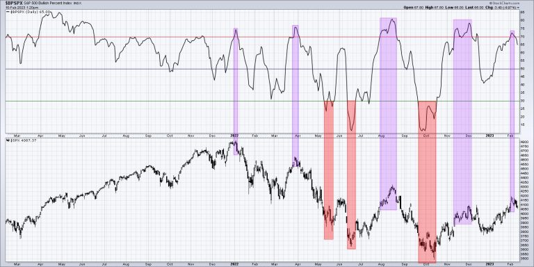 This chart shows the ratio between SPY and GOVT and how it contracted since March last year. This contraction is reflected in the tails moving closer together on the Relative Rotation Graph over the previous 6-7 weeks.