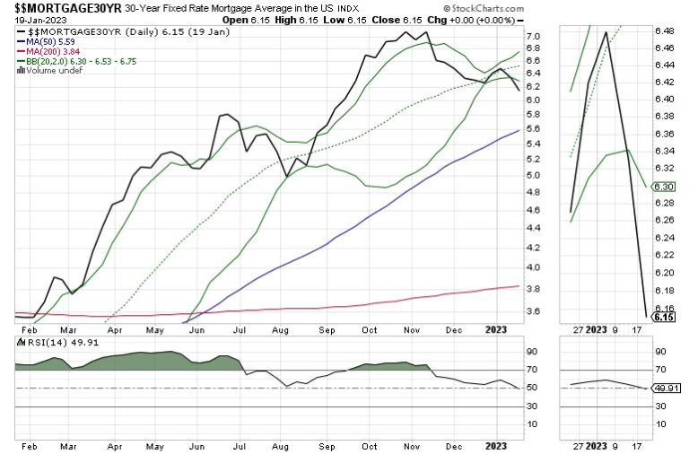 Last week, we saw the average 30-year mortgage drop to 6.15%. That’s nearly a point below the late 2022 peak. Meanwhile, the data that is being reported is from December. On the ground, there is a pickup in activity. For the first time in several weeks, I’m seeing new housing being framed in new developments, along with the sale of lots for future builds. Moreover, I am starting to see a trickle of traffic in some existing homes I keep an eye on as indicators. This suggests that the awful housing data will see some improvement in the next few months.