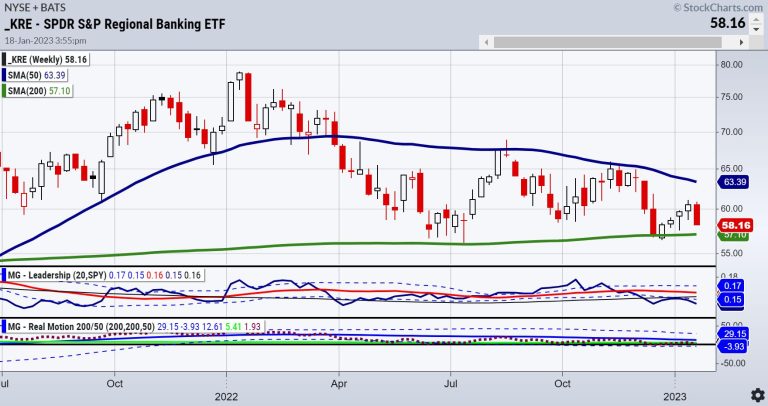 KRE Regional Banks is a member of my Economic Modern Family. With bank earnings in gear, this ETF measures the smaller banks–the ones where people living in more rural communities and smaller cities often go to borrow and save money.