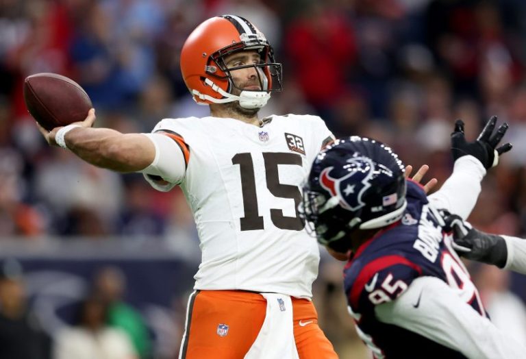 Backup Dorian Thompson-Robinson, a fifth-round rookie, suffered a head injury in his first start after Watson went down. P.J. Walker was on the roster and started two games earlier in the season. But head coach Kevin Stefanski went outside the building and brought Flacco in to run his offense – a move that had he and DeMeco Ryans, his counterpart Saturday, as the front-runners for NFL Coach of the Year.