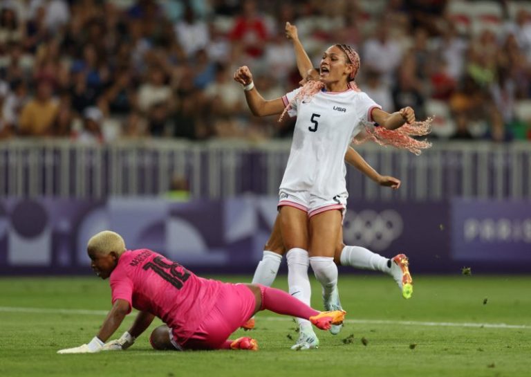 The U.S. didn’t connect on its first nine shots of the match despite putting significant pressure on Zambia. Finally, Trinity Rodman found the back of the net. The 22-year-old said she entered her Olympic debut with nerves, but she didn’t show it when she deployed the “Trip Spin,” which is what she called the move that allowed her to slip her defender in the box and beat Zambia keeper Ngambo Musole.