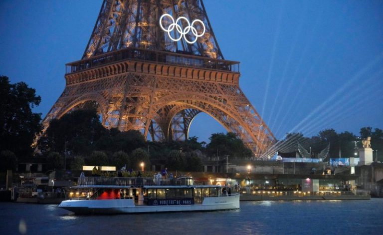 As the torch — guarded by Nadal, Serena Williams, Carl Lewis, and Nadia Comaneci — advanced on the Seine, those near the Trocadéro were treated to a stunning light show out of the Eiffel Tower. It was a scene out of Hollywood. Bright red and green and turquoise lights soared through the sky like an EDM rave, illuminating the iconic landmark in a quintessential ‘City of Lights’ way.