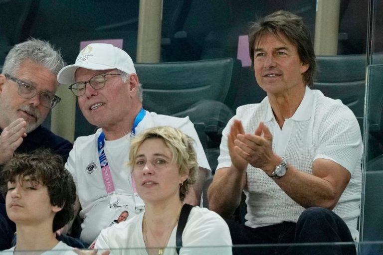 On the northern side of Bercy Arena, John Legend and Chrissy Teigen took their seats near a luxury box with their children, who held up a white flag adorned with the American flag and Olympic rings. A few rows away, Tom Cruise shook hands with a fellow spectator and smiled. Snoop Dogg, who is in Paris as a contributor with NBC, leaned back in a seat in the front row.