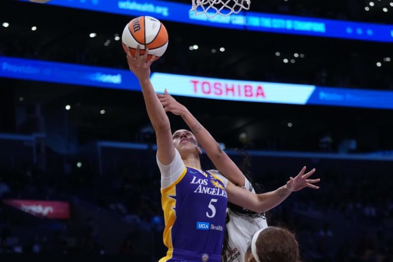 The Sky made it a one-point game with six minutes left in the third, then the Sparks went on a 20-6 run for a 15-point lead, the largest of the game. The run included four 3-pointers, three of which came from Kelsey Plum. She has 24 points with six 3-pointers. The deep shot has been working for Los Angeles with 13 made 3-pointers so far on 26 attempts.