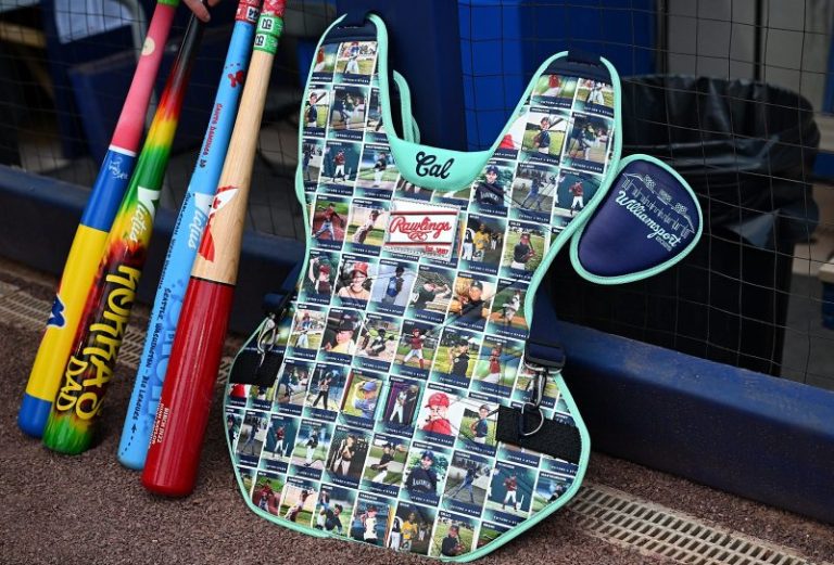 Raleigh had a custom chest protector made for the game, featuring pictures of all of his teammates during their respective times playing at the youth baseball level.