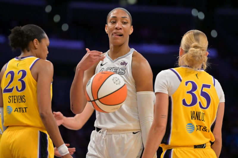 WNBA commissioner Cathy Engelbert joined Wilson’s boyfriend, Miami Heat center Bam Adebayo, presented the award. Aces owner Mark Davis wore a pink wig, along with many of his staffers, to celebrate Wilson. She will receive $15,450 and a trophy designed by Tiffany & Co.